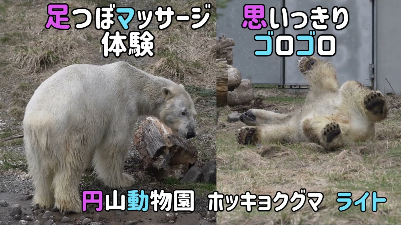 円山動物園 ホッキョクグマのライト 足つぼマッサージ体験 思いっきりゴロゴロ