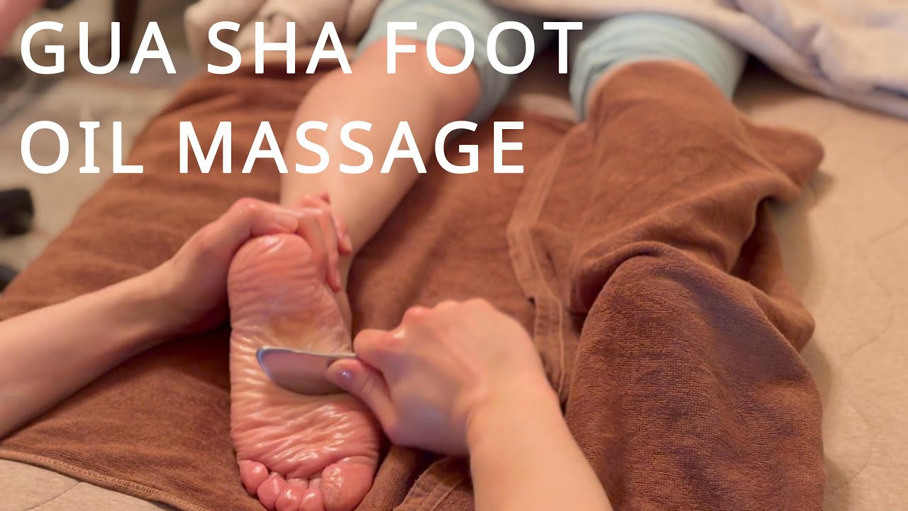 This video shows an oil massage on the soles and calves while lying face down, combined with foot reflexology treatment.
