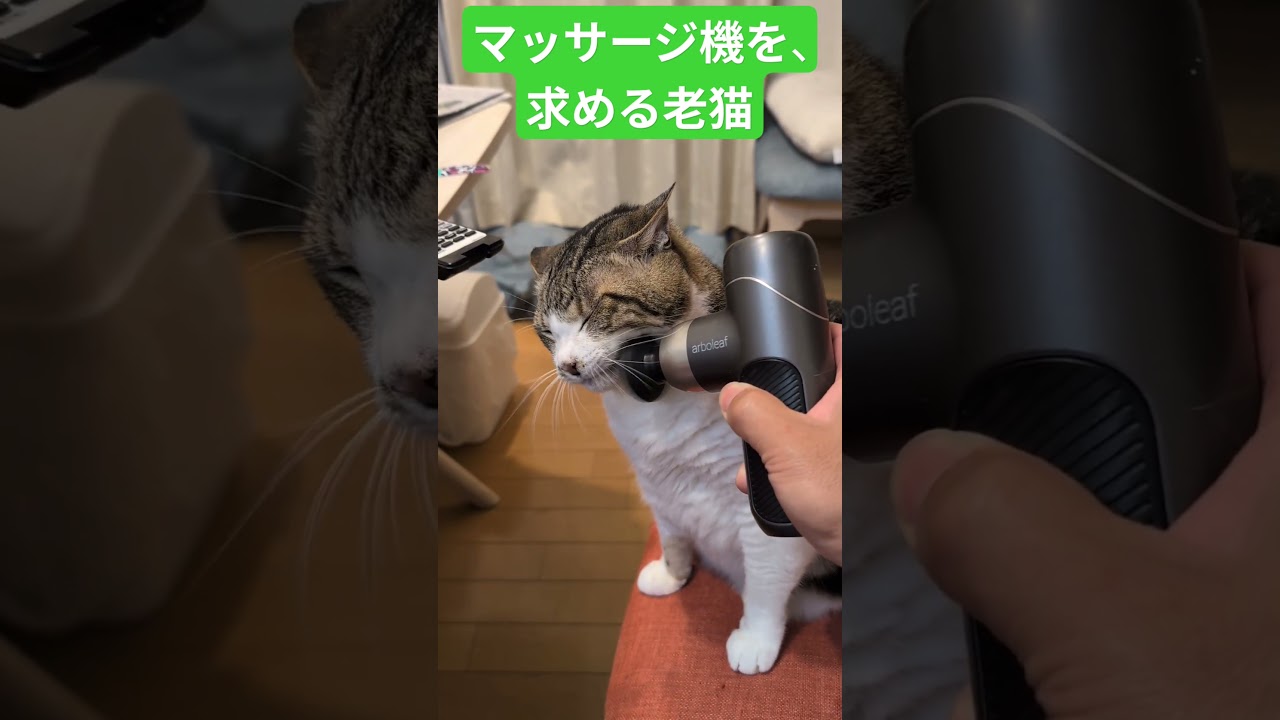 老猫。マッサージ機。欲しがり。大丈夫? #猫 #老猫 #猫マッサージ