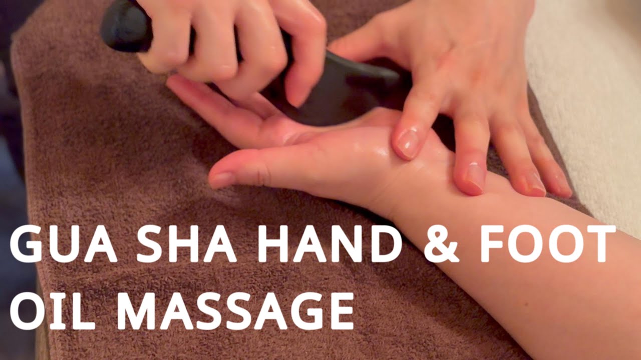 Hand oil massage from palms to forearms (using gua sha)