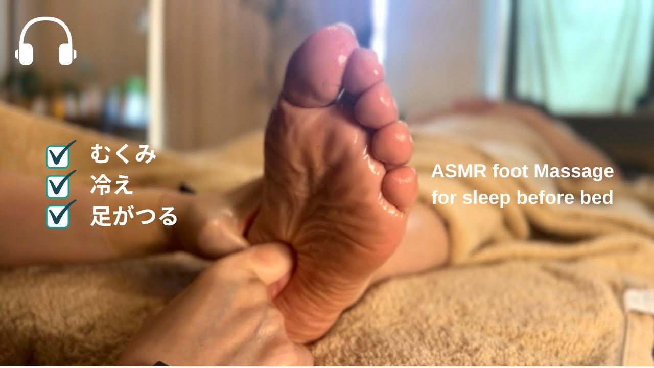 ASMR foot massage 【no talking no music】おやすみ前の足つぼ【字幕解説付き】