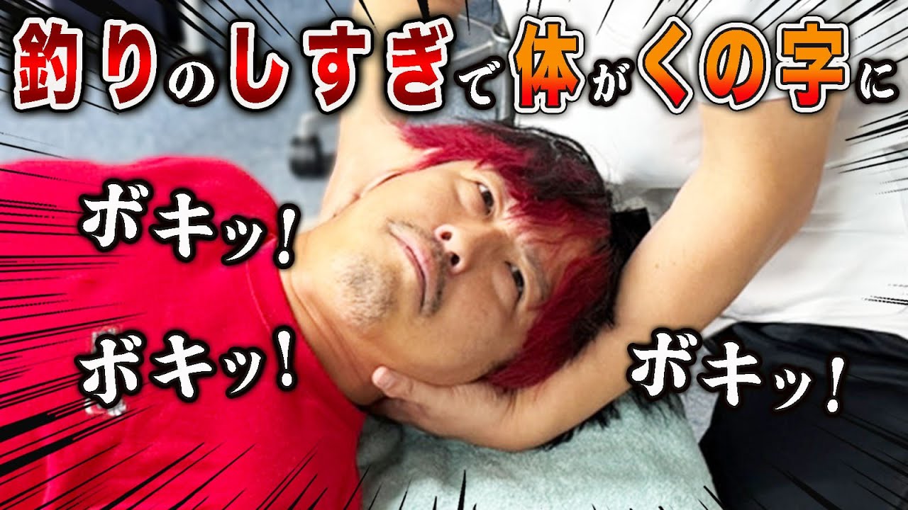 釣りのしすぎで体が曲がり、腰痛や首痛を発症…