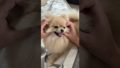 ほっぺマッサージを受けるポメラニアン