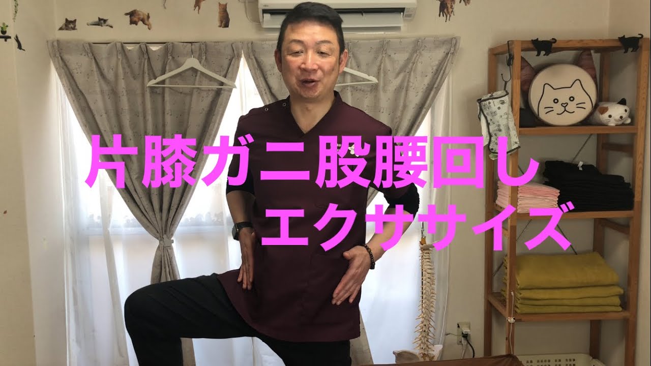 片膝ガニ股腰回しエクササイズです。