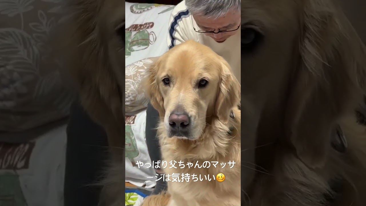 やっぱり父ちゃんのマッサージは絶妙だ。 #goldenretriever
