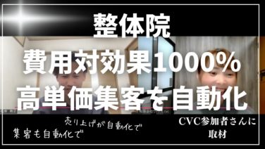 整体 整体院・骨盤矯正・美容整体で高単価集客を自動化!CVC参加オーナーさんにLPと広告を使った集客の自動化の仕組の成功の秘訣と、高リピートで経営できる裏側を取材しました!男性経営者でも売れる理由を対談!