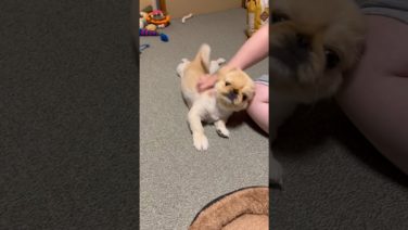 マッサージ 7/22 マッサージが気持ち良すぎて。しっぽフリフリ。 紋左衛門 もんざえもん #puppy #pekingese #ペキ #ペキニーズ #癒し #子犬 #犬のいる暮らし